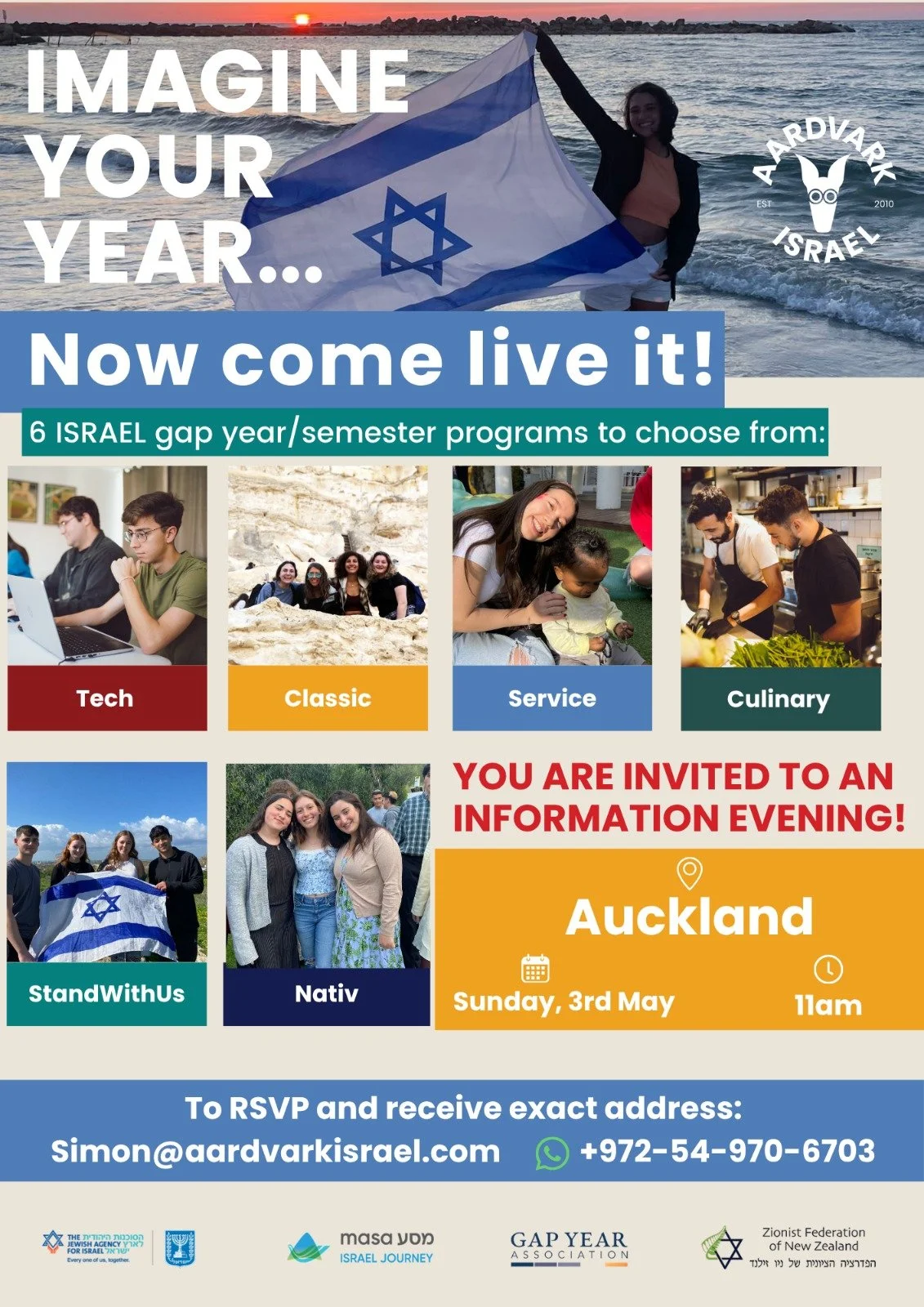 Join us on Sunday, May 3rd at 11am for a talk with Simon, admissions director for the Aardvark Israel Program.