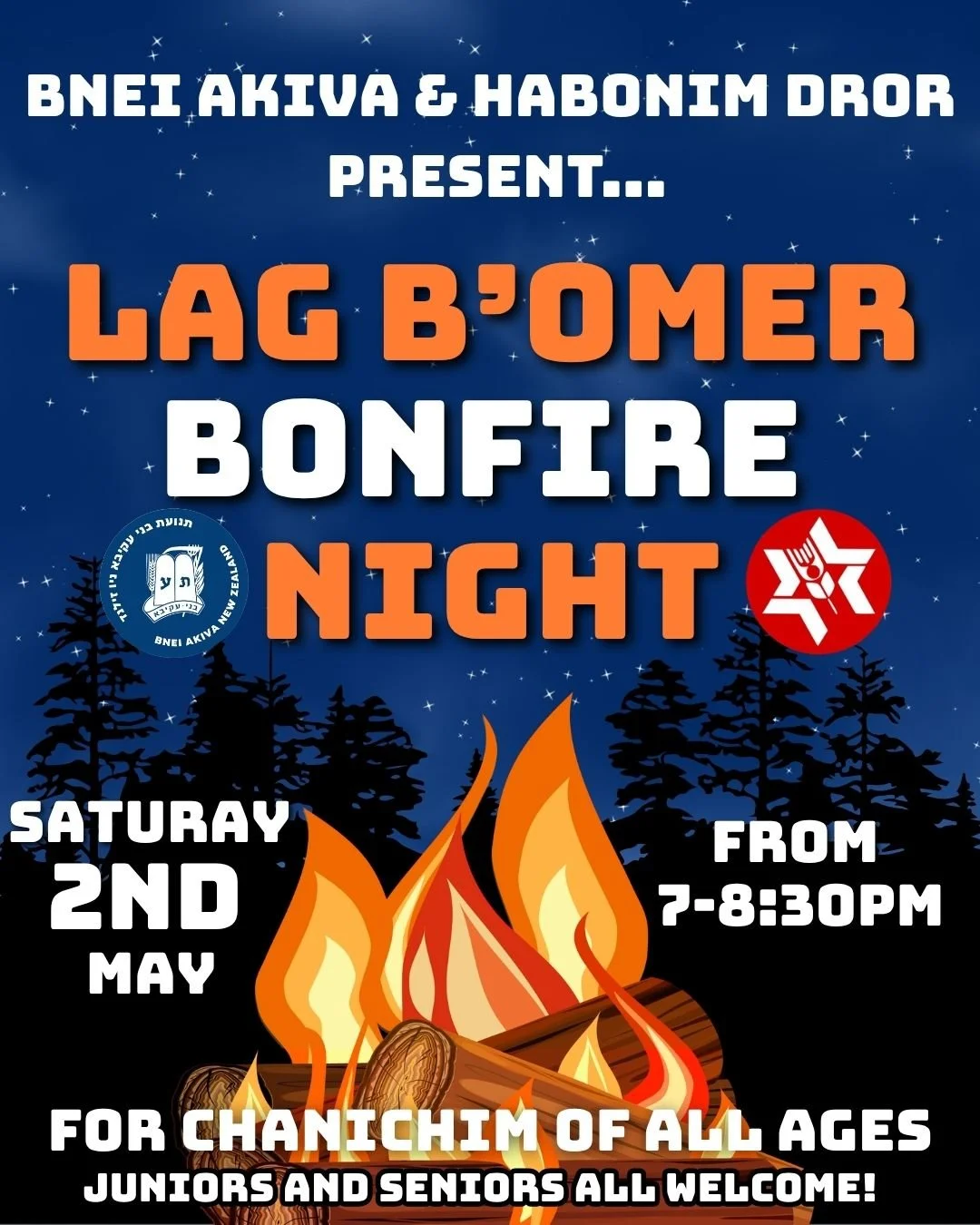 Bnei Akiva and Habonim Dror are excited to invite all Chanichim to join us for a fun and warm Lag Ba’Omer bonfire!